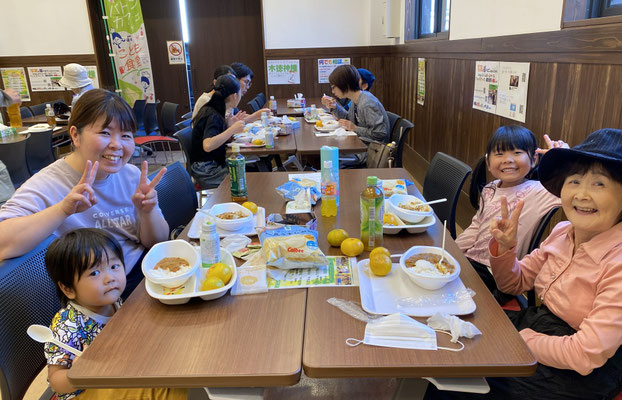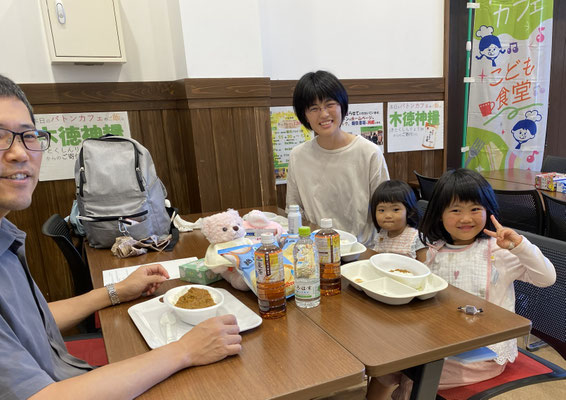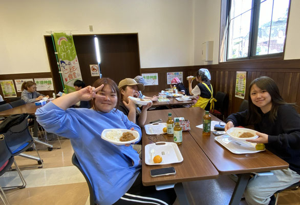 11時30分から、お野菜たっぷり、愛情たっぷりの手作り和牛すじカレー、農家さんから頂いたみかん、フードバンク様からご寄付いただいたお菓子やジュース、お茶・お水等と木徳神糧様から頂いた白米を焚いてカレーのご飯としてご提供しました。
