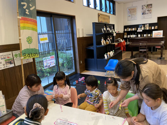 こどもたちは、真剣に聞いていて、質問にもはっきりと答え、デコブラシづくりを楽しんでいました。